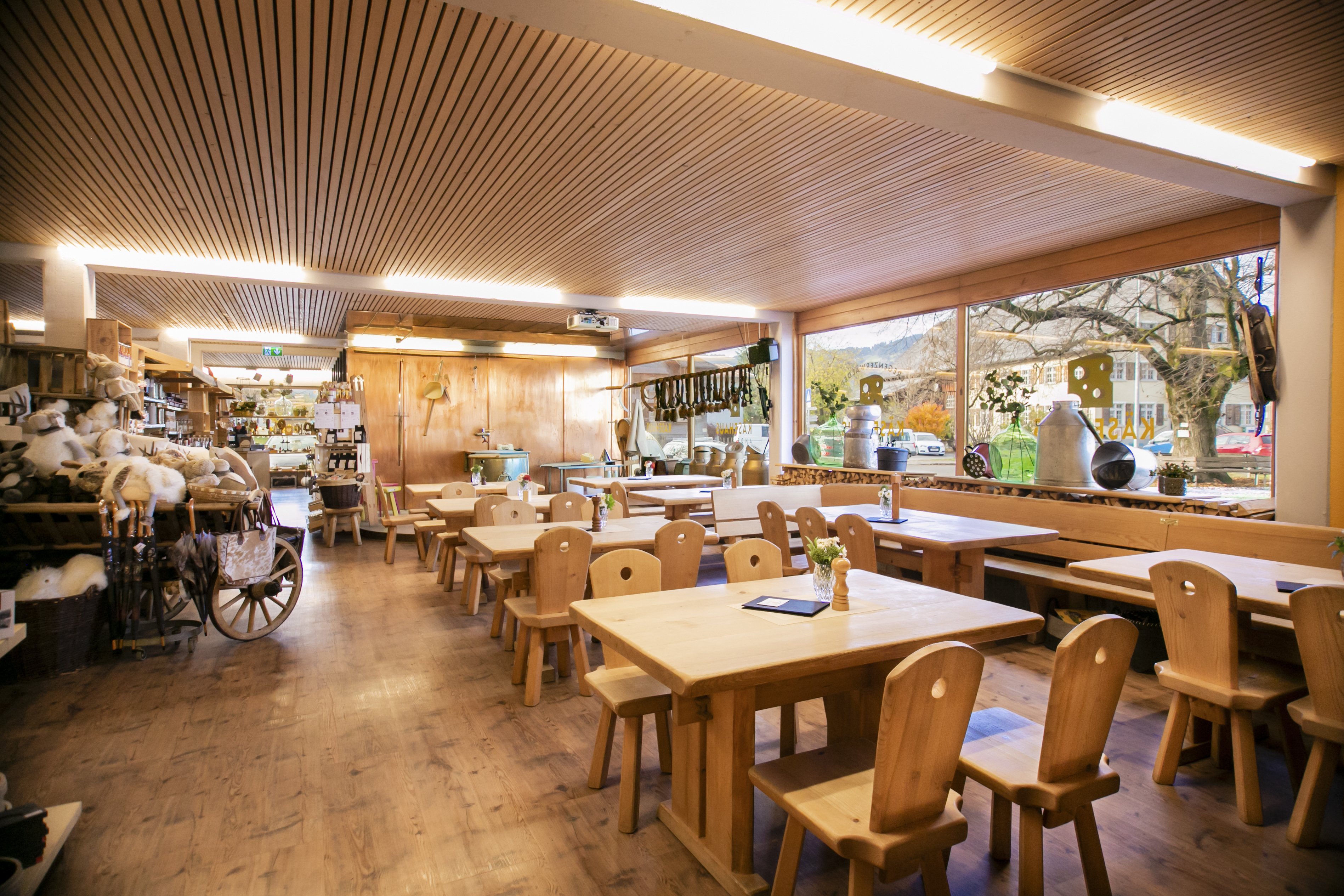 Gerne servieren wir Ihnen den Käse, Käsespezialitäten und hausgemachte, warme Speisen in der Käshus Wirtschaft. Oder wir bereiten Ihnen diese küchen- oder essfertig vor, um nach Hause mitzunehmen.