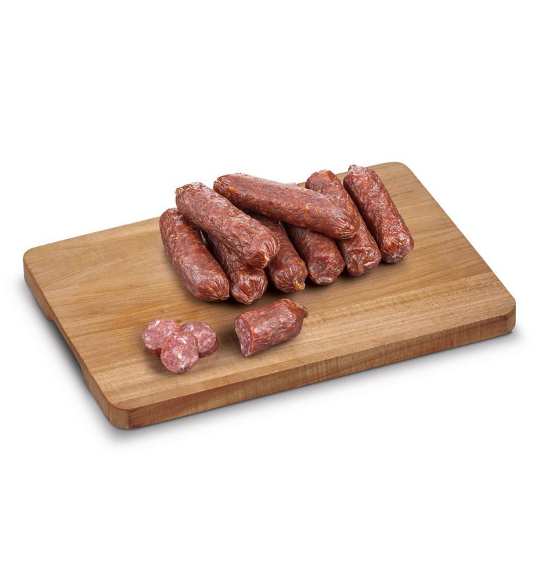 Verwendungshinweis: verzehrfertig – keine Zubereitung erforderlich, kalt essen, Wurst in essbarer Hülle.